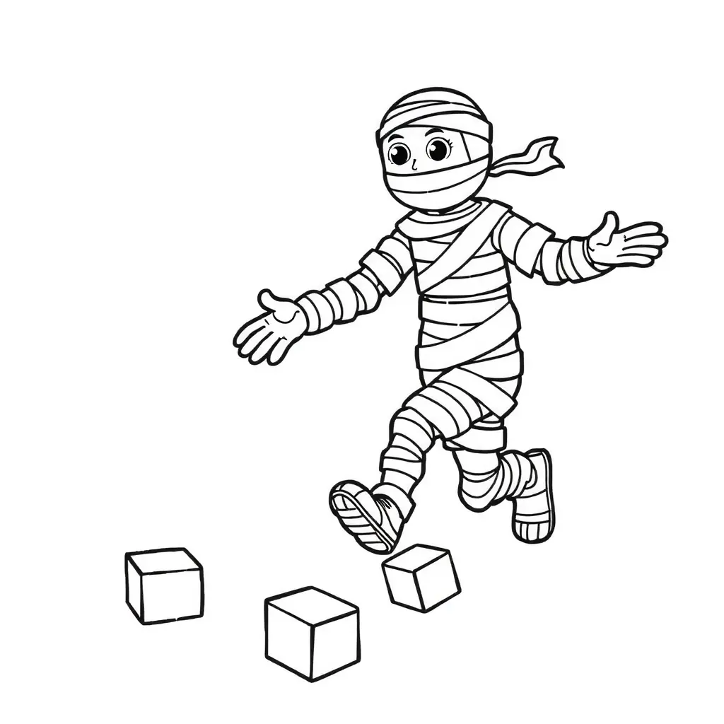 Laden Sie dieses spezielle Ausmalbild als PDF zum Download herunter und bereiten Sie sich auf eine gruselige, aber entspannende Ausmalstunde vor! Dieses Bild zeigt eine Mumie, die fröhlich Hopscotch spielt.