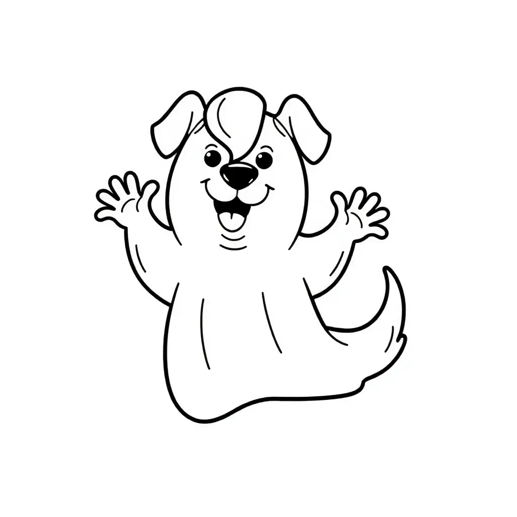 Geisterhund wedelt freundlich mit dem Schwanz als Ausmalbild in Schwarz-Weiß.