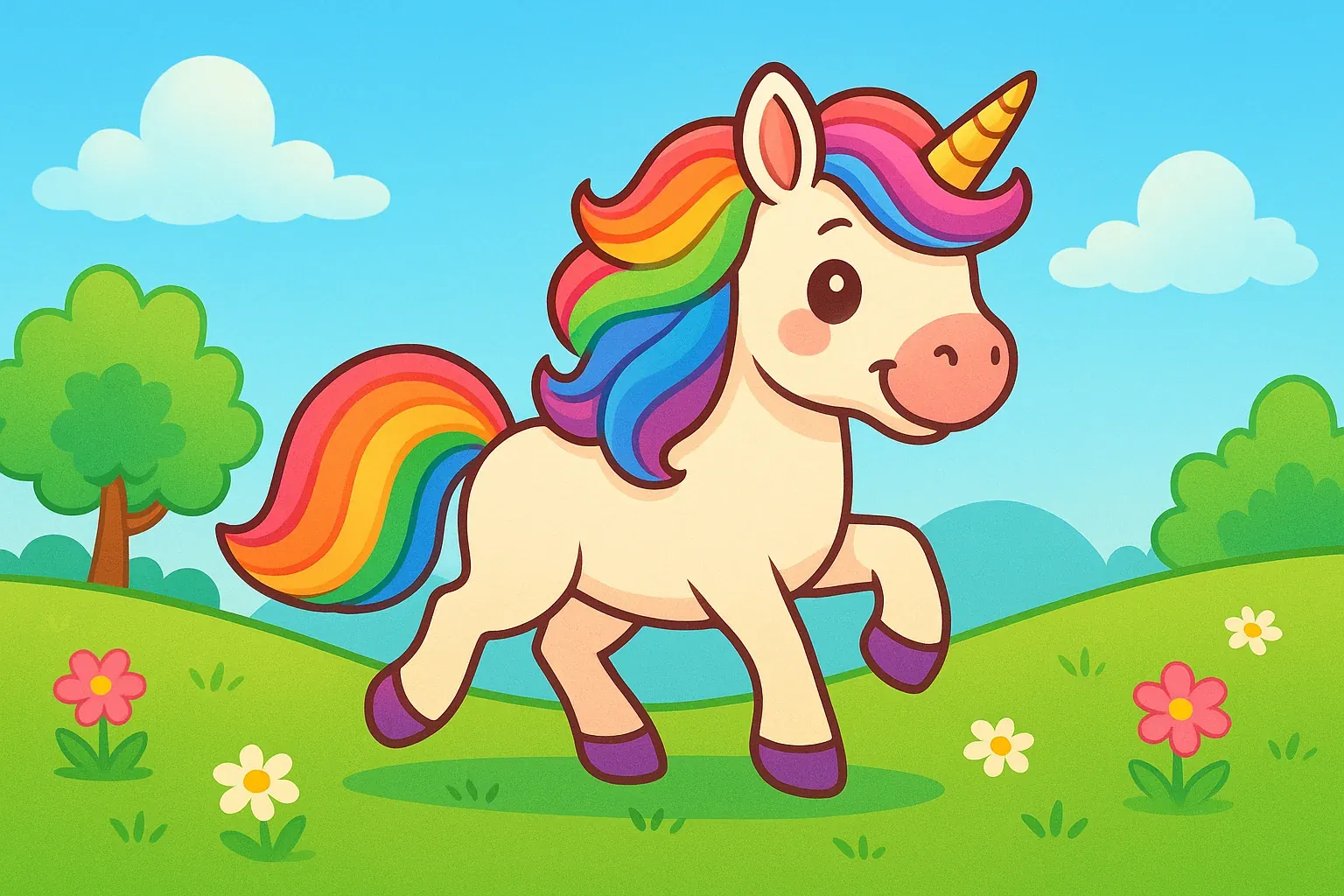 Das Bild wurde speziell für Ausmalbücher und den spielerischen Einsatz im Kindergarten oder zu Hause konzipiert. Die klare Linienführung macht das Ausmalen zum Vergnügen, während die einfache Gestaltung auch Kindern mit wenig Ausmalerfahrung ermöglicht. Du kannst deine Lieblingsfarben wählen, um dem Einhorn eine einzigartige Note zu verleihen. Vielleicht ein glitzerndes Fell, ein leuchtend roter Regenbogen oder ein schimmerndes Horn!