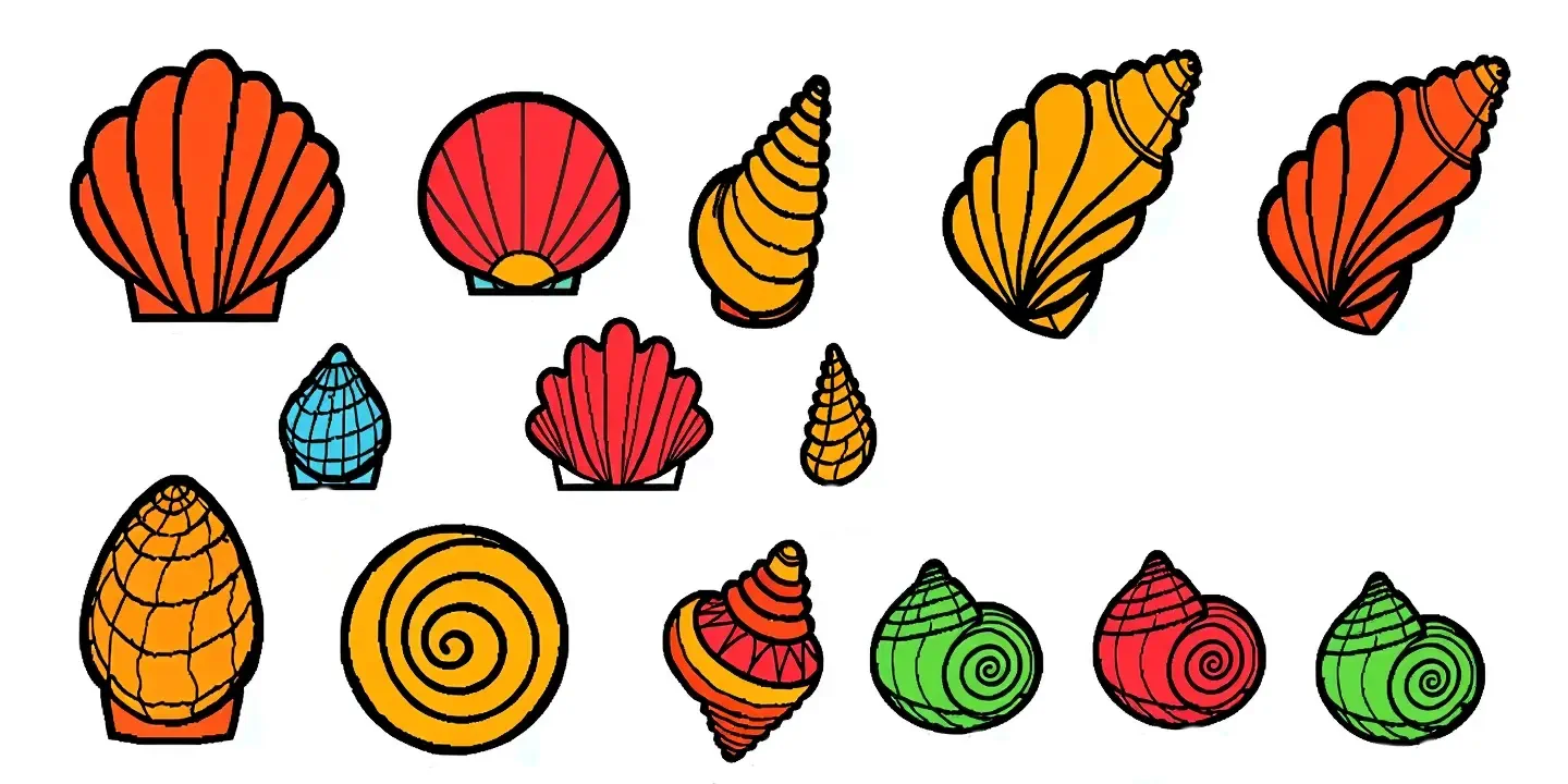 Diese Sammlung von Muscheln bietet eine einfache und unterhaltsame Möglichkeit zum Ausmalen. Die klaren Linien machen es leicht, die Details auszumalen und die eigenen kreativen Ideen einzubringen.