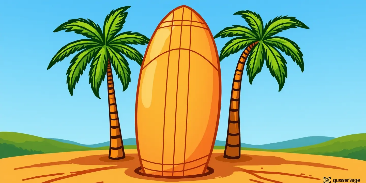 Ein tolles Ausmalbild von einem Surfbrett, das am Strand liegt. Die üppigen Palmen schaffen eine entspannte Atmosphäre, die zum kreativen Ausmalen einlädt.